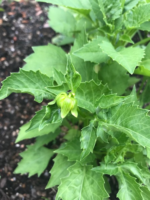 This is the first promising development on the dahlia front and the first to produce a flower bud. It looks like it might be yellow, what do you think?